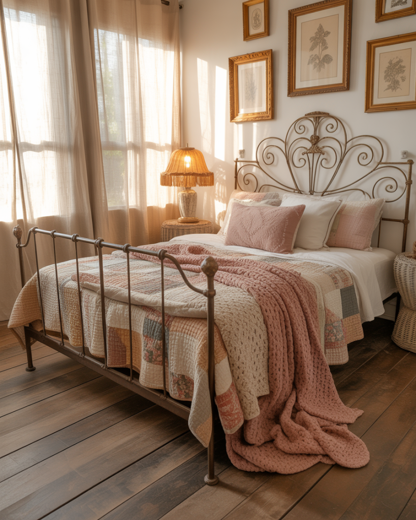 A vintage boho room feels nostalgic yet fresh. Use aged wood furniture, crochet blankets, and antique lamps for soul and depth. Add wall decor with old frames or artwork. The slightly worn look adds warmth and character, perfect for dreamers who love history woven into modern comfort.
