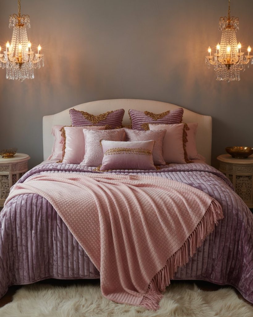 Luxury meets boho through texture and shine. Layer velvet, silk, and earthy neutrals with metallic details. Add pink or purple tones for drama. This mix of glamour and comfort turns any room into a refined haven, much like the boho-chic bedrooms featured in Elle Decor.