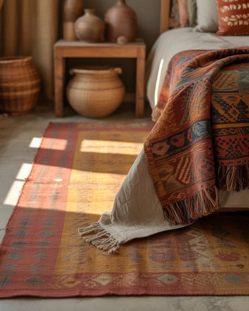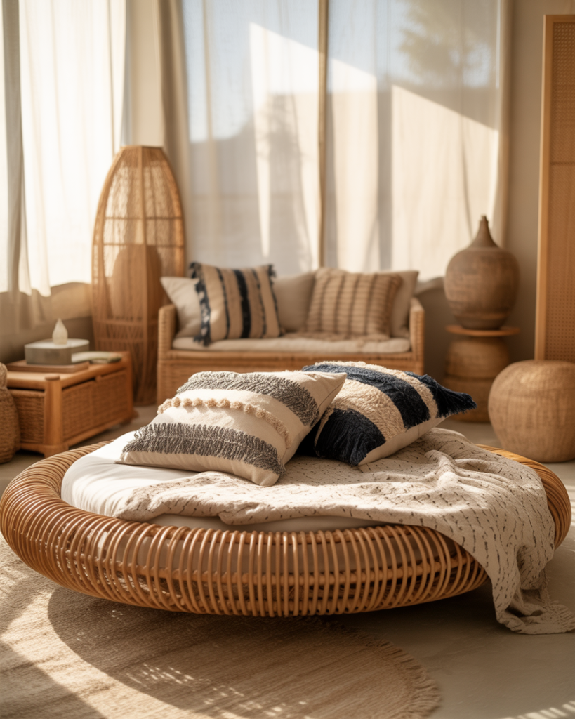 The Afro boho style celebrates heritage and craftsmanship. Combine tribal prints, woven baskets, and clay pottery with earthy tones. Add carved wood wall decor and natural fabrics to balance the look. This global-inspired trend is rooted in authenticity and creativity, spotlighted by designers like Vanessa Brady.