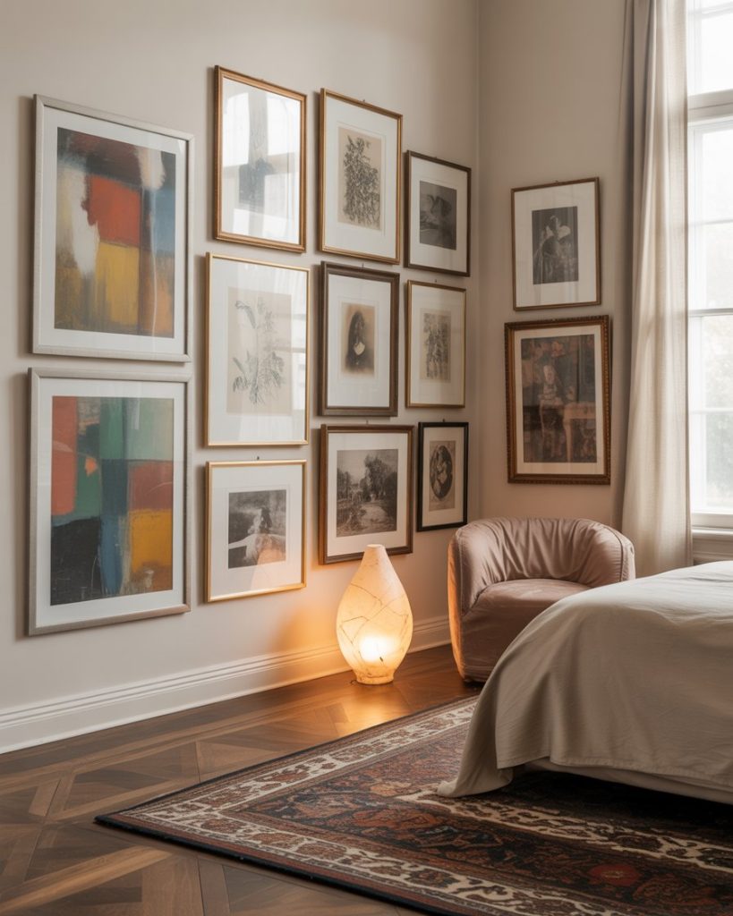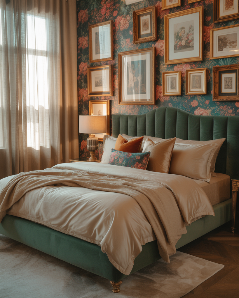 Maximalist wall decor is making an entrance for anyone who will stand against minimalism. Gallery walls, ornate wallpaper, and eclectic art pieces convert bedrooms into expressive sanctuaries. This is appropriate for the ideas of women glam style or women luxe, offering daring inspirations that tell one’s own story. Designers encourage mixing frames, textures, and colors in unapologetic vibrancy.