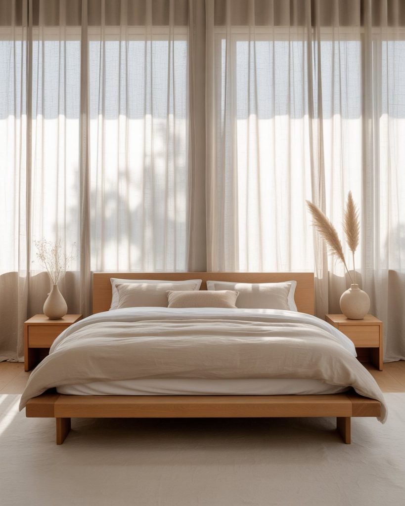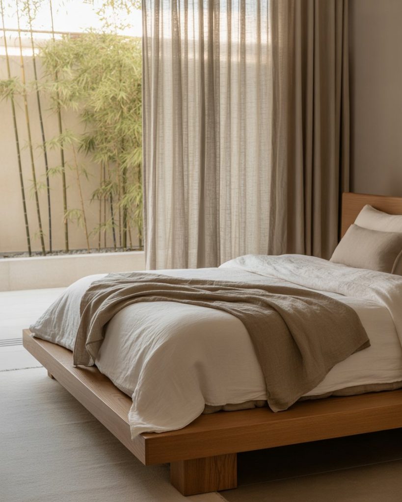 By mixing Japanese simplicity with Scandinavian warmth, Japandi stands tall as a good aesthetic choice for 2026. Clean lines, low furniture, and organic materials such as bamboo or oak cut serene spaces. It is just right for couples minimalist ideas embracing soft neutral colors and uncluttered layouts. Toss in some shoji-style wall decor or linen drapes for a harmonious retreat that would actually feel very peaceful and well balanced.
