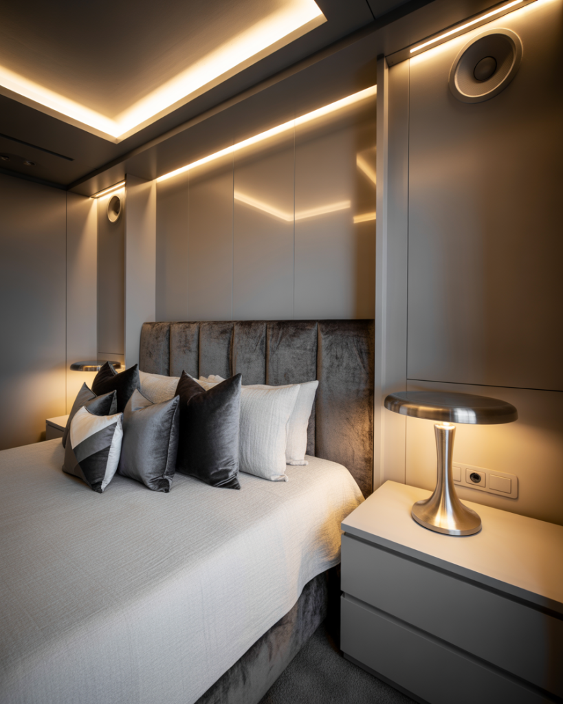 Emerging more and more into modern luxury ideas for couples are those featuring smart tech. Hidden speakers, adaptive smart lighting, and climate-control systems are seamlessly built into the design. This leads to a futuristic decor luxe that brings comfort without interrupting the beauty of the room. Designers are now hiding the tech in sleek furniture, so the space is all glitz but with cutting-edge convenience tucked away.