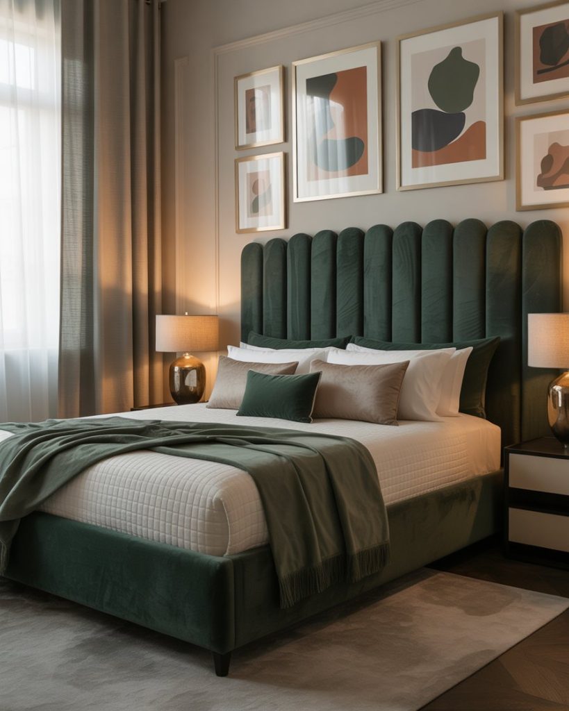 In 2026, big or custom headboards act as wall décor. From tufted velvet in jewel tones to wood-carved panels, the headboard is going to be the defining element in the room. This flows well with ideas for women luxe and ideas for couples modern luxury in an easy-flowing way without clutter. A bold headboard can take even a small room and make it feel supremely luxe and complete.