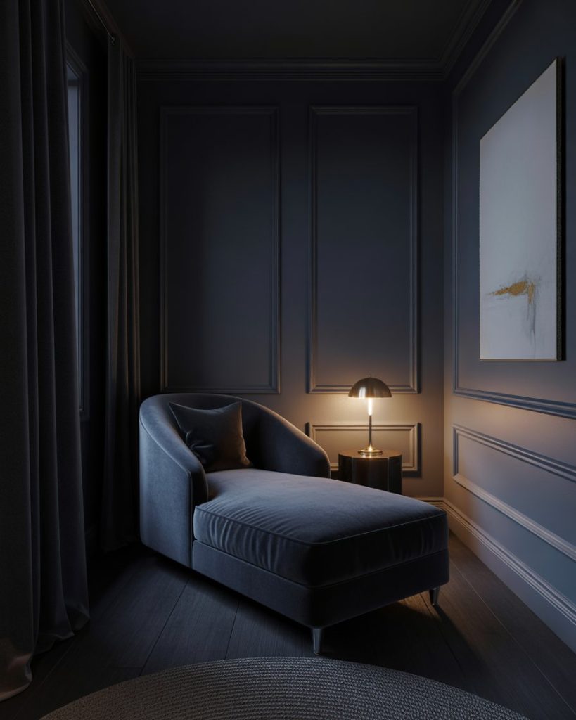 The dark color palette of deep navy, charcoal, or espresso colors simply screams luxury and style for those who prefer moody interiors. They create intimacy, especially working in the advantage of a small room instead of a limitation. This layered color palette paired with ambient light and plush furniture gives a cinematic and chic vibe-perfect for an intimate getaway that still feels very personal.