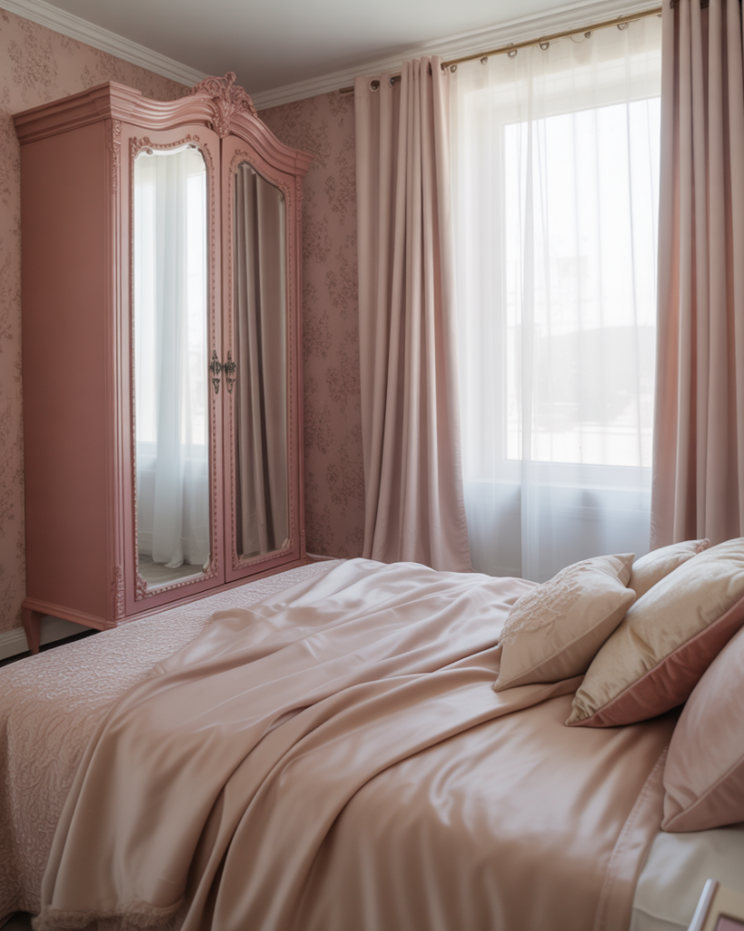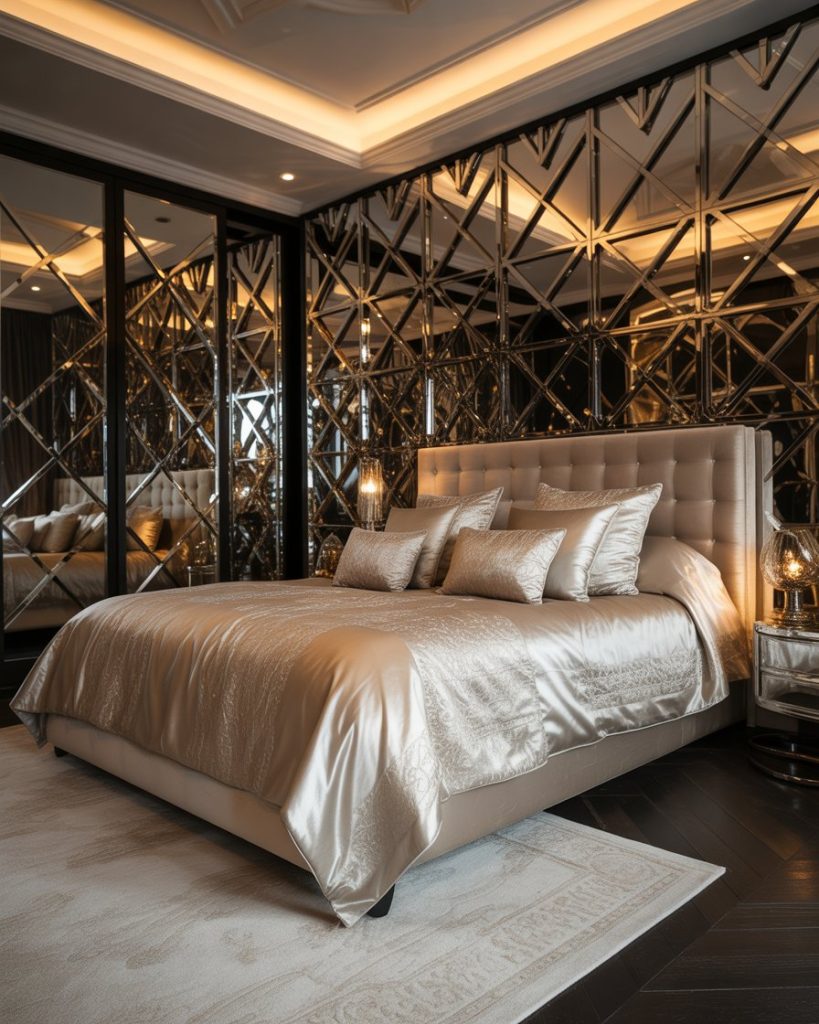Ideas for women glam style in 2026 often include shining surfaces—gold hardware, chrome lamps, or mirrored nightstands. Metallics bring glam without clogging up the room. Reflective wall décor or metallicly trimmed wardrobe ideas can sparkle it up. This style works well both in sprawling mansions and compact apartments where glam accents raise the sense of space.