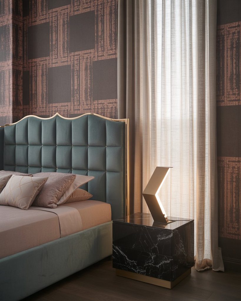Pop design accents such as sculptural ceiling light fixtures, bold geometric wall décor, or wildly patterned rugs inject a fun yet classy energy into a luxurious bedroom. Such a theme caters to modern luxury ideas for couples and luxe ideas for women, mixing elegance with personality. Kelly Wearstler reminds us all: the more you dare to mix; the more edgy and memorable your bedroom becomes.