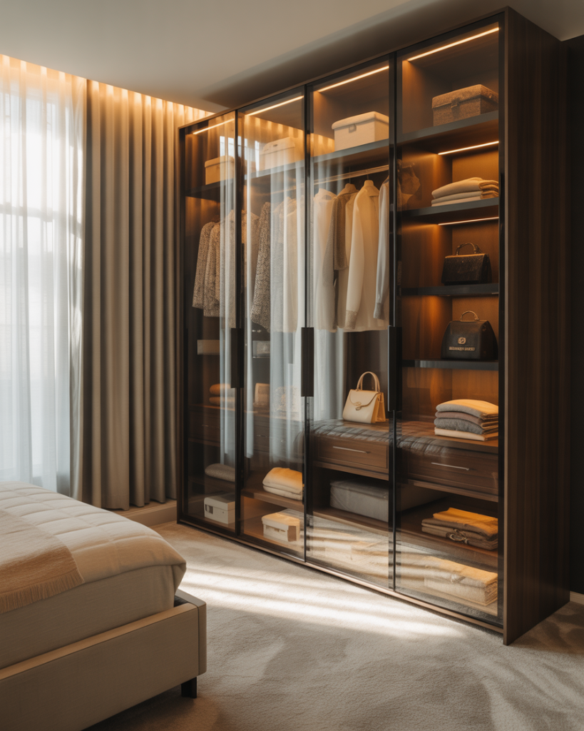 2026 will be the year transforming storage into bold design elements by integrating the wardrobe into the room’s central focus. Glass-front wardrobes illuminated from within treat fashion almost like art- perfect for women glam style ideas or luxury ideas for women. Wards with chic handles, mirrored fronts, or bespoke shelving will then straddle the line between the practical and the most striking décor luxury elements.