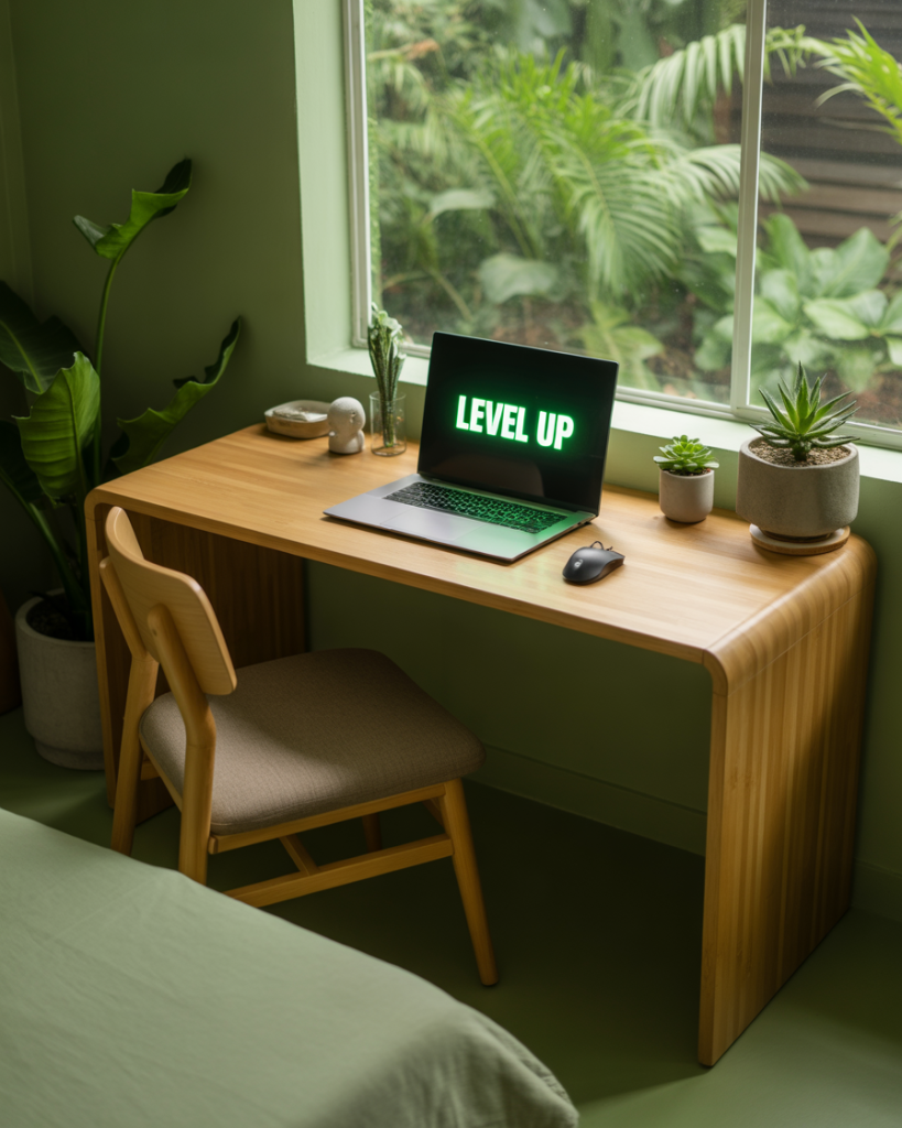 Gamers who care about sustainability can design green eco-focused setups. Use bamboo desks, recycled furniture, and energy-efficient monitors for bedrooms small minimalist layouts. Adding plants enhances the cozy vibe while reducing stress. This design works for men and couples who want their gaming space to align with eco-conscious living trends.
