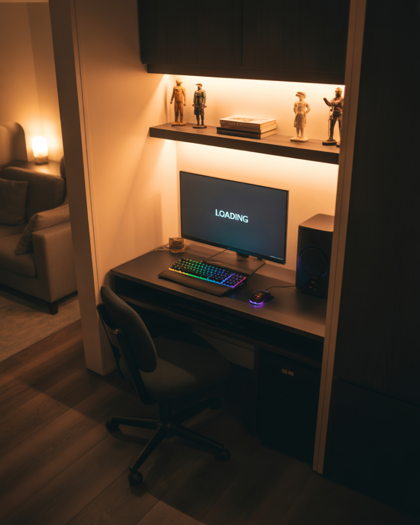 If you live in a small space, a cozy setup can transform even the tiniest area. A compact computer desk with floating shelves, soft lighting, and a comfortable chair can make bedrooms small cozy inviting and practical. This setup works well for apartments or shared homes where maximizing every corner matters. A warm atmosphere makes gaming not just functional but relaxing.