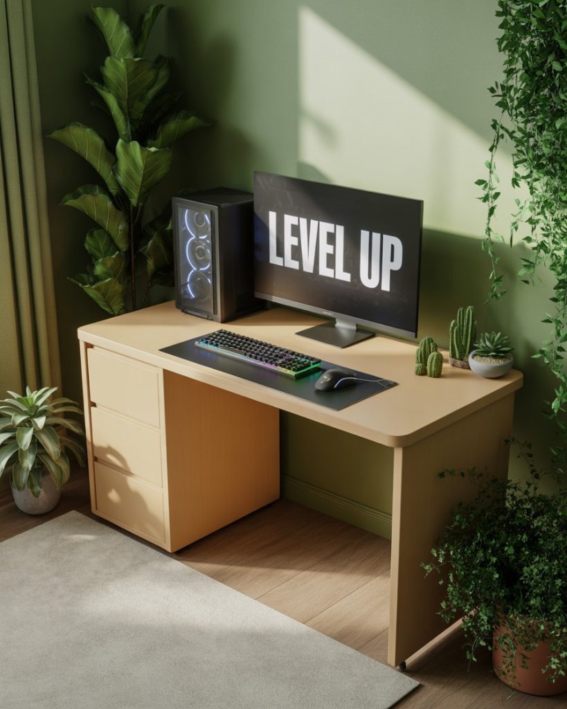 Adding touches of green creates a refreshing balance against technology-heavy setups. Place plants near your computer desk or beside the tv to bring nature into bedrooms small minimalist spaces. This style feels cozy yet modern, lifting mood and energy levels. It’s an ideal choice for gamers who want their environment to feel alive as much as digital.