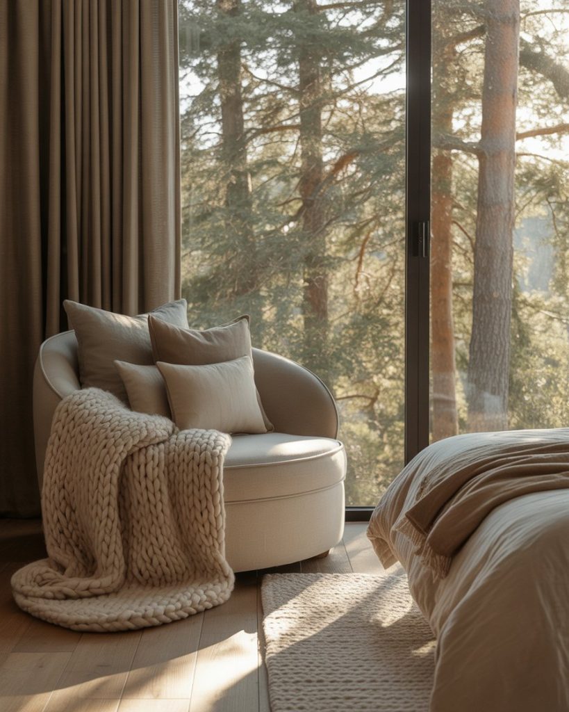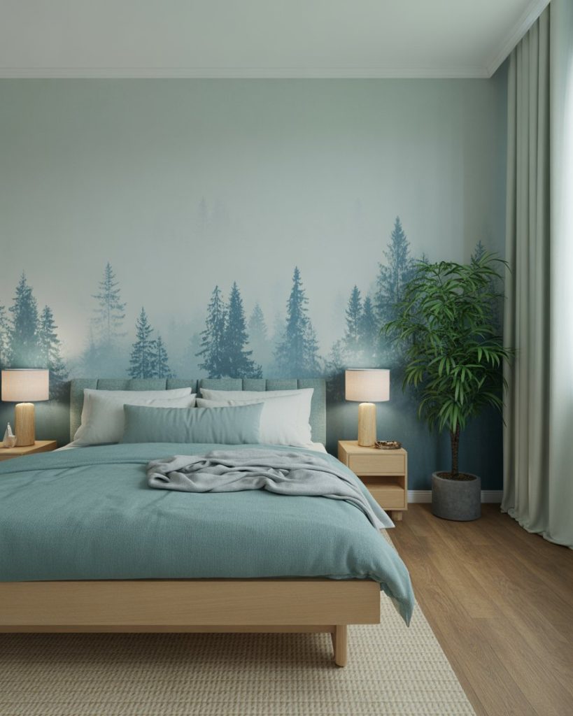Deep forest greens bring trees’ calm into your room. Add browns with woods, mint cushions, plus moss texture to layer with an organic touch. I once painted a forest wall behind my bed — instantly, the room felt grounded and serene. Design experts recommend soft lighting and loads of plants to elevate this sense of calm, especially for homes that hardly ever have an outdoor view.