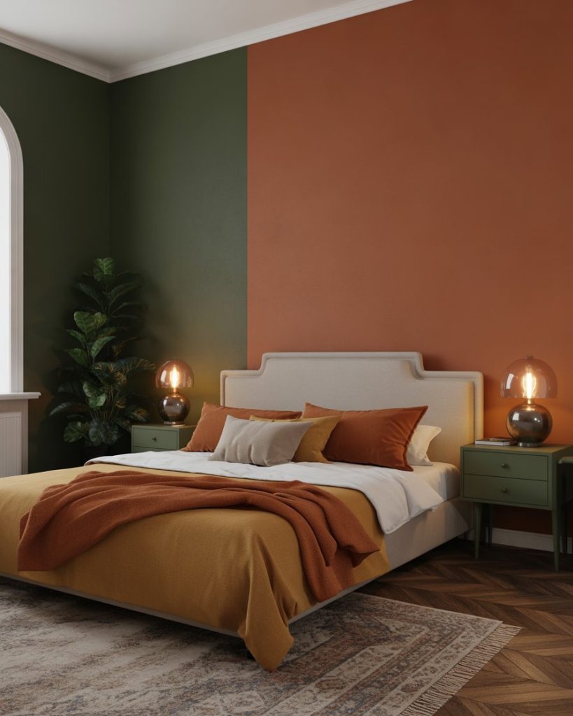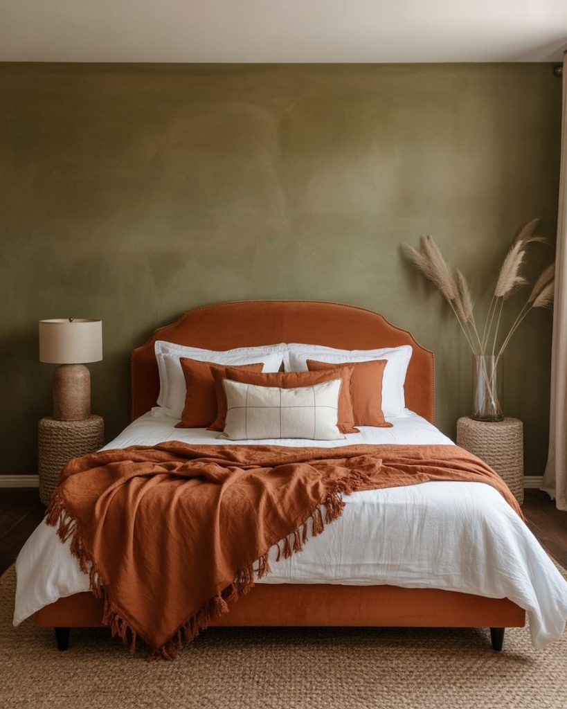 2. Olive and Burnt Orange Accent