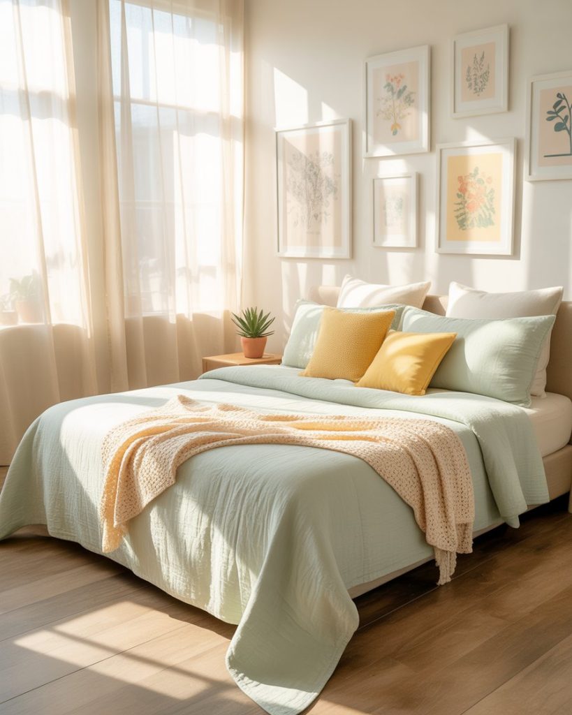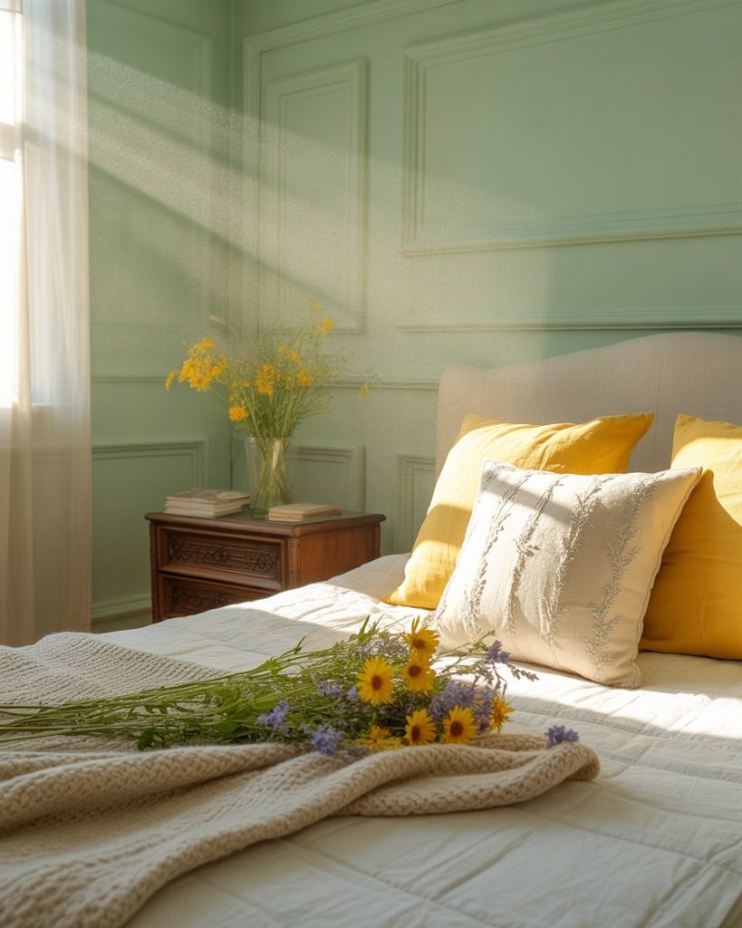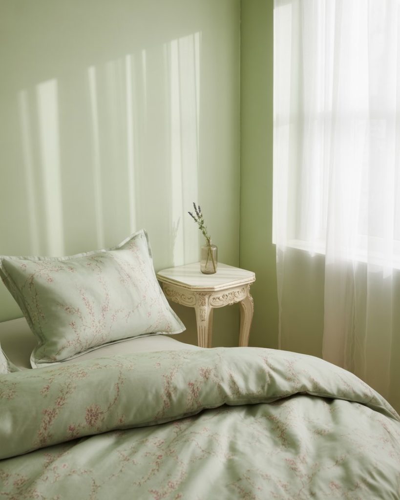 Light mint, pastel, and pink accents keep a small bedroom fresh. Add airiness and serenity with the use of white and touches. Designers mention that this palette truly works in smaller areas or guest rooms because it feels so soft and clean. In my home, mint walls with pastel decor laid the foundation for brighter mornings and calmer evenings — an everyday escape one never tires of.