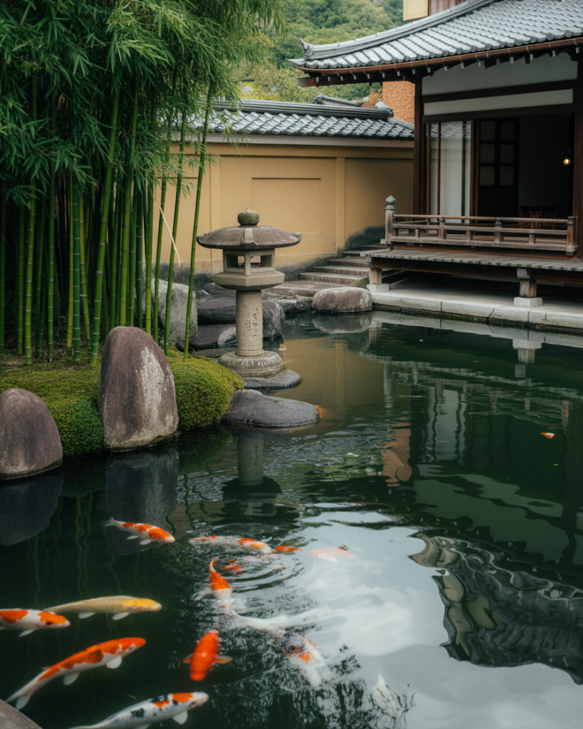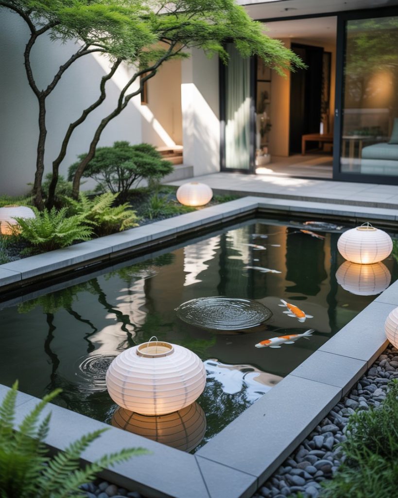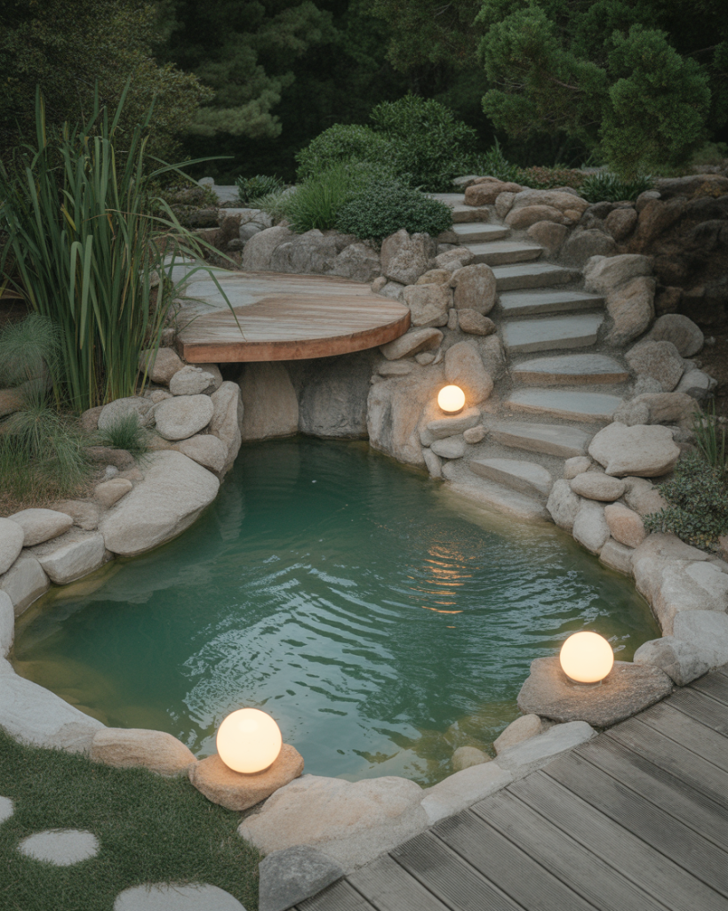 A Japanese-style pond emphasizes balance, serenity, and simplicity. Stones, bamboo, and koi fish are central elements, while carefully placed lanterns add quiet beauty. This design works in both spacious gardens and small rooms of outdoor space, creating an instant retreat for meditation. I once sat by a cozy Zen pond where the sound of water over rocks calmed even the busiest day. It’s a style rooted in mindfulness and harmony.