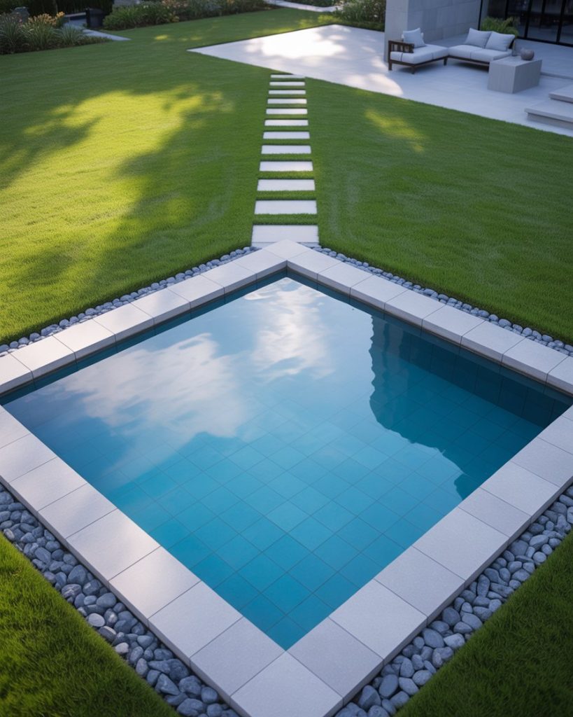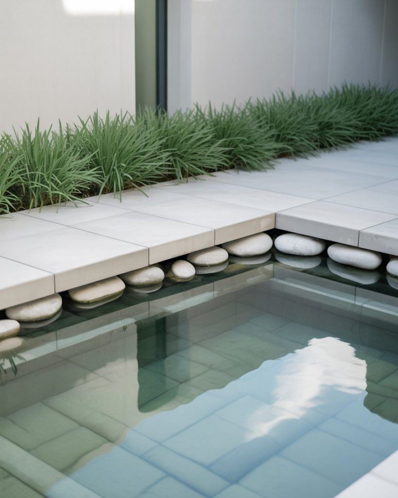 Sometimes the best idea is to keep things simple. A reflective pond with clean lines, minimal decoration, and a few green plants allows the water to take center stage. I once helped a friend build a plain square pond, and its beauty came from the stillness. This idea works well in courtyards or small rooms of outdoor space where less is more.