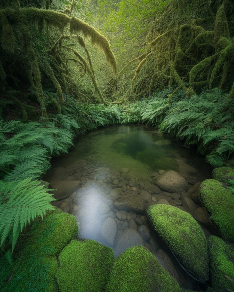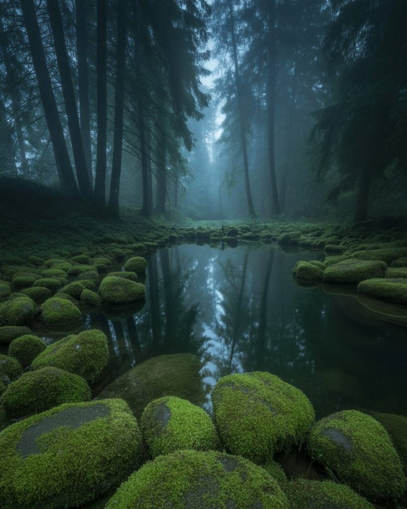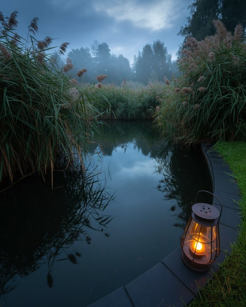 A pond set within a wooded area takes on a moody atmosphere. Surrounded by tall trees, dark shadows, and mossy stones, it feels like a secret world. I once hiked in Oregon and stumbled upon a forest pond that seemed untouched by time—it was hauntingly beautiful. This idea is best for those who want mystery and depth in their landscape.