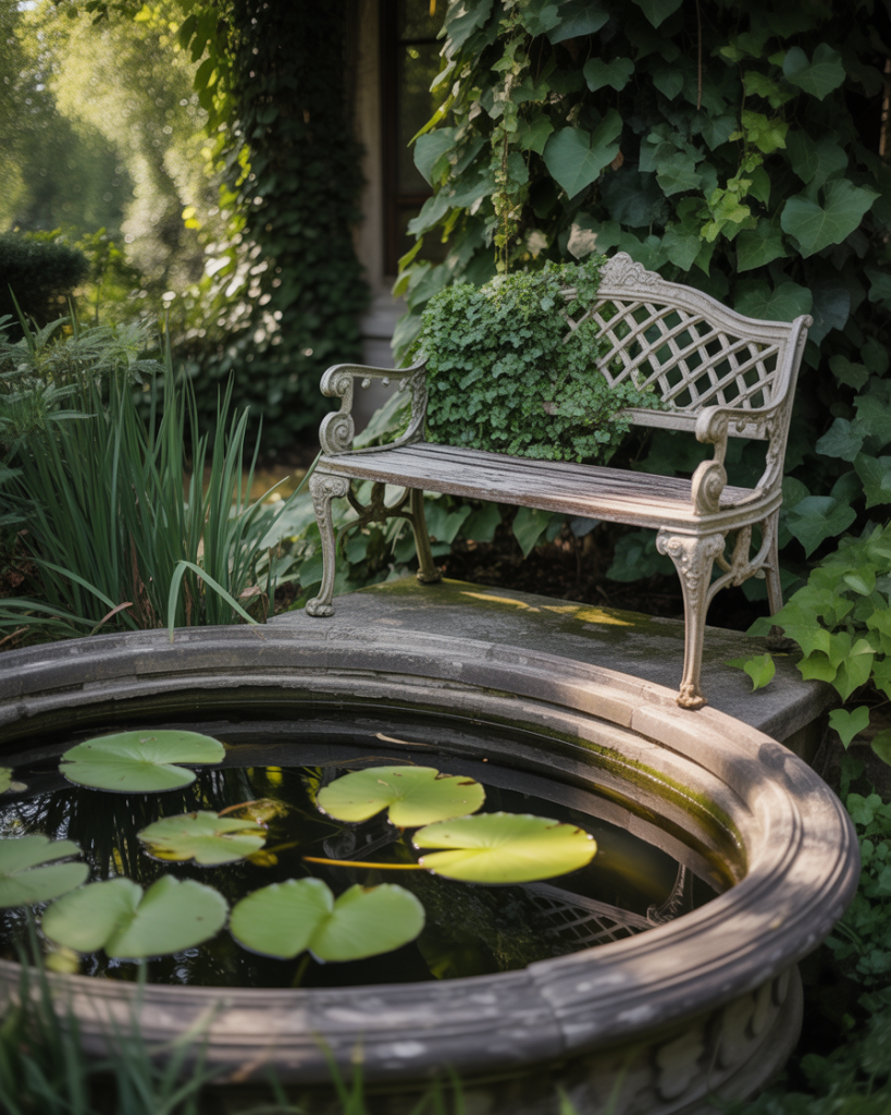 A vintage pond feels timeless, with cast-iron benches, ivy-covered trellises, and perhaps a small fountain centerpiece. Adding lily pads and fish creates that old-world charm. I recall visiting a historic estate where the pond looked like it had always belonged there. Using shabby chic accessories like weathered urns or faded garden statues gives this pond a lived-in authenticity. It’s perfect for romantics who want a touch of nostalgia in their outdoor escape.