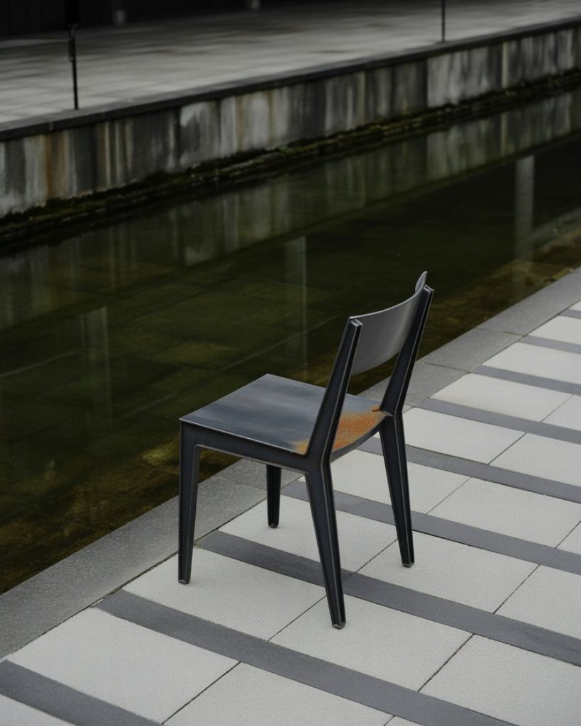 An industrial pond makes a bold, dark statement. Think steel edging, geometric lines, and minimalist water features. This style pairs well with loft-style homes and urban backyards, especially when accented with black and white seating. A friend of mine in the city created one with corten steel, and it looked striking against the brick backdrop. This pond idea thrives in spaces that want drama and simplicity at the same time.