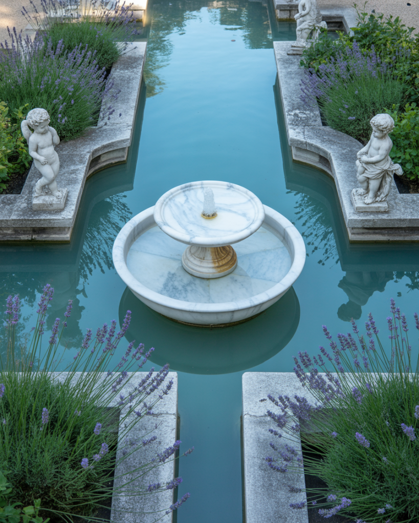A French pond design leans on symmetry and classic touches. Add stone borders, manicured hedges, and perhaps a sculpted fountain centerpiece. I once walked through a garden in New Orleans inspired by Versailles, where the pond looked regal yet welcoming. Paired with lavender and white marble statues, this style evokes timeless European refinement. Perfect for those who love tradition with a hint of grandeur.