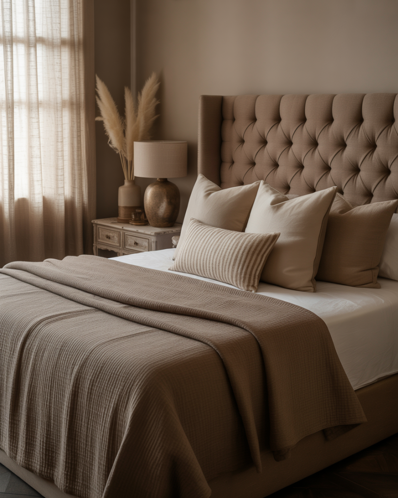 The resurgence of brown and taupe tones indicates a new dating toward quiet comfort. These neutrals add an element of depth while simultaneously grounding with a relaxing warmth that comforts the eyes in seconds. Pair these mellow neutrals with linen curtains, woolen rugs, or soft lighting, and you will feel the room embracing you. Being a mix of contemporary with a pinch of timeless coziness, this palette has been the favorite of luxury hotel-inspired bedrooms.