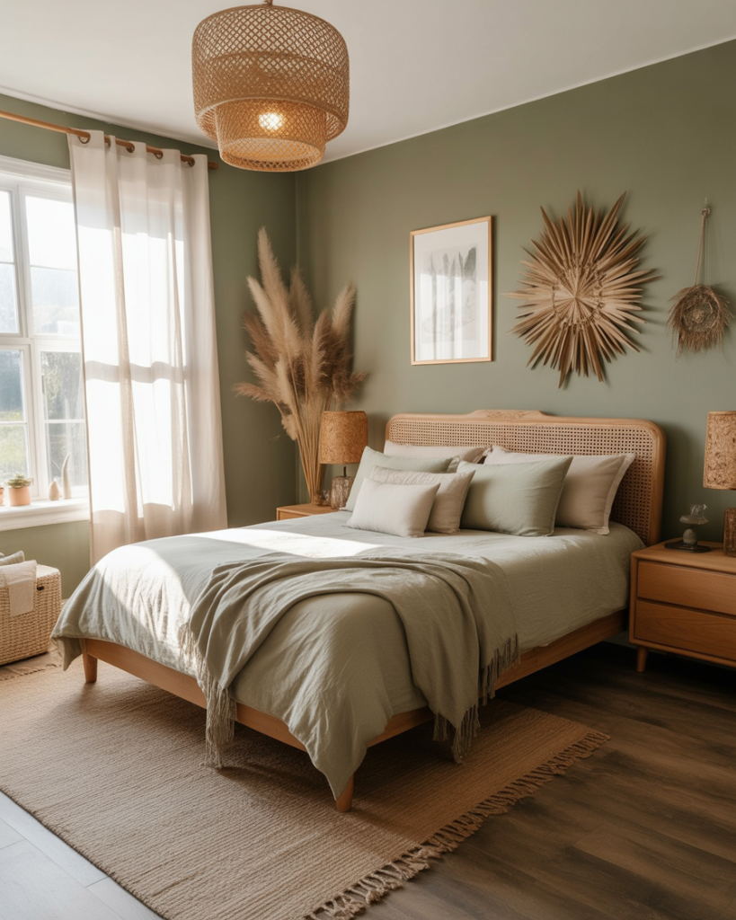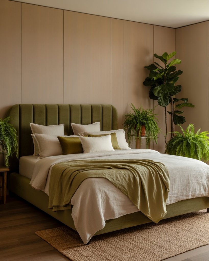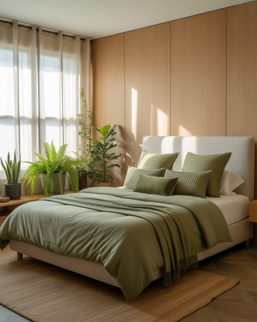 Let indoors blossom with relaxing shades of green and organic wood finishes. Whether it is dark or olive green, the color scheme stands for balancing and relaxing energy. Back that up with linen curtains, sheets of cotton, and tall houseplants for the whole natural look. It is fresh, healing, and grounding-the very signature of the biophilic trend that dominates through 2026.