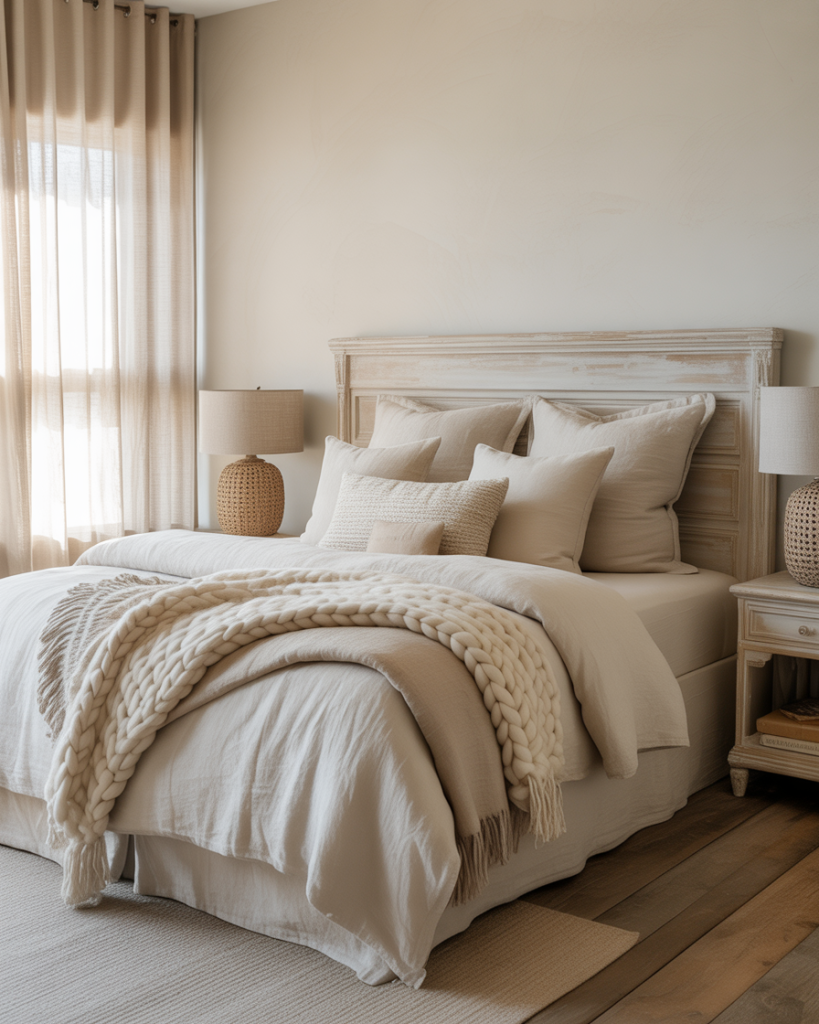 A room designed around warm neutral shades radiates serenity. Cream walls should be combined with throws that carry texture and wooden accents that are a touch light, keeping it simple yet luxurious. Then a touch of shy metallic splash, maybe some brass sconces or a mirror with its frame painted gold, to bring out a little sophistication. Beige works beautifully as a canvas on which you can paint with any accent colour and watch your décor transform with the change of the seasons.