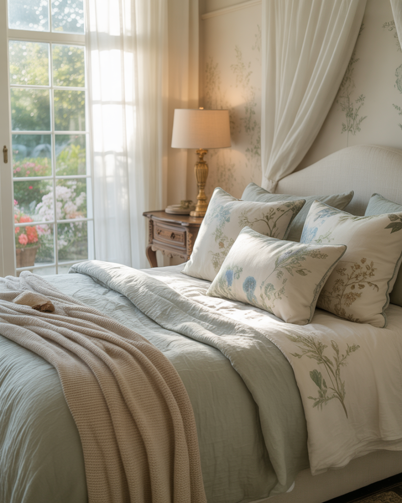 Nothing feels more inviting than a cottage-inspired bedroom layered with floral bed linen, patchwork quilts, and soft blue or green hues. Add some vintage elements and a ton of pillows for informing a nest-like comfort. In all respects, this design style reminisces about warmer times, yet somehow still manages to fit the present. It is relaxation and an expression of cheerful times: kind of a room that looks like a weekend holiday every day.