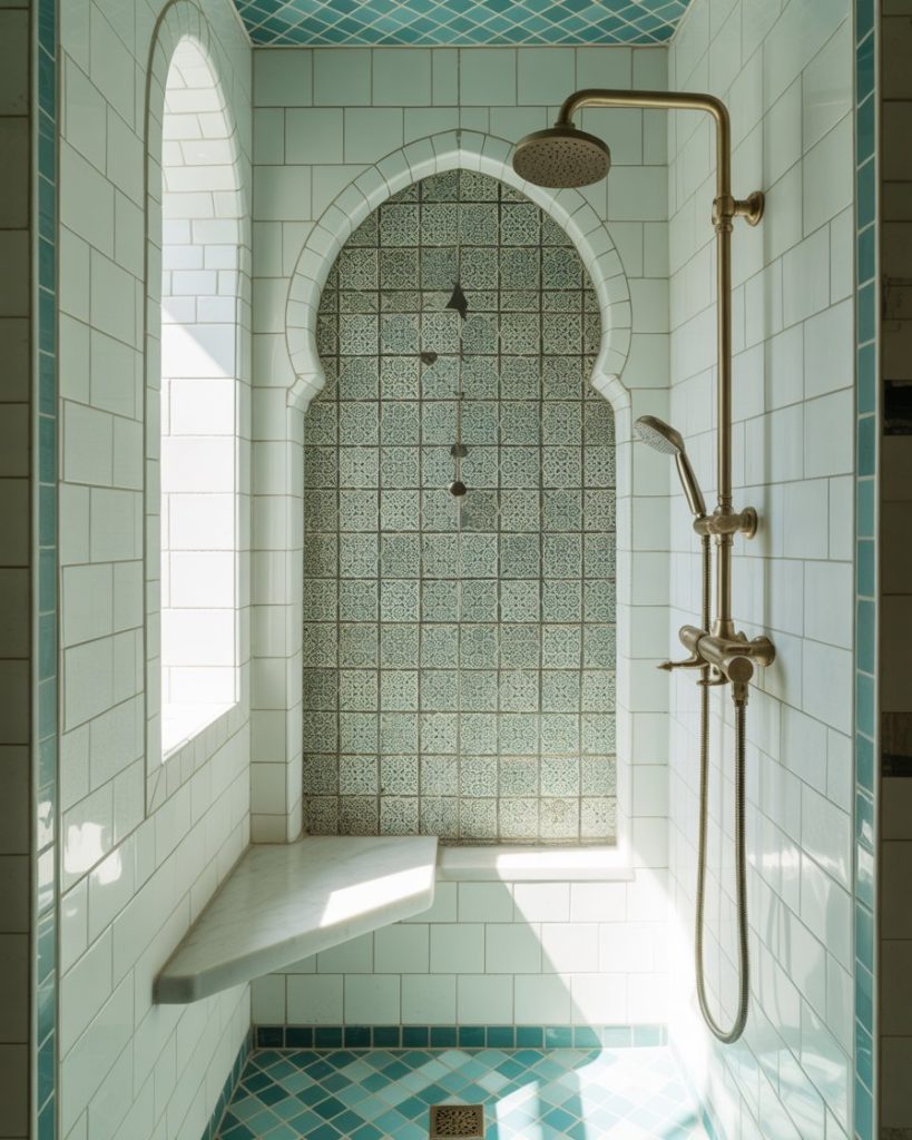 Handcrafted Zellige tiles, with their subtle imperfections, are taking over design boards in 2026. Their irregular glaze reflects light beautifully, creating depth in white, blue, or gray tones. Perfect for adding personality to a small bathroom, Zellige offers that timeless artisan feel while still being low-maintenance. A walk in shower wrapped in these tiles feels like a boutique hotel experience.