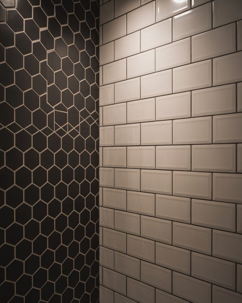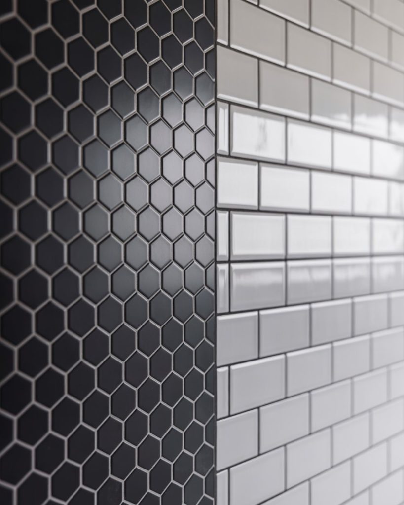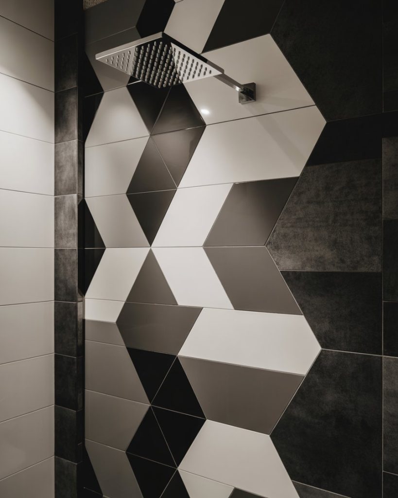 The classic hexagon is evolving into bold new patterns. Whether in tiny mosaics for a small bathroom floor or oversized large slabs in black and white, hexagonal layouts bring playful rhythm to showers. Designers love mixing grey tones with brighter grout to highlight the geometry. This idea works in both master bathrooms and compact tub surrounds, depending on scale.