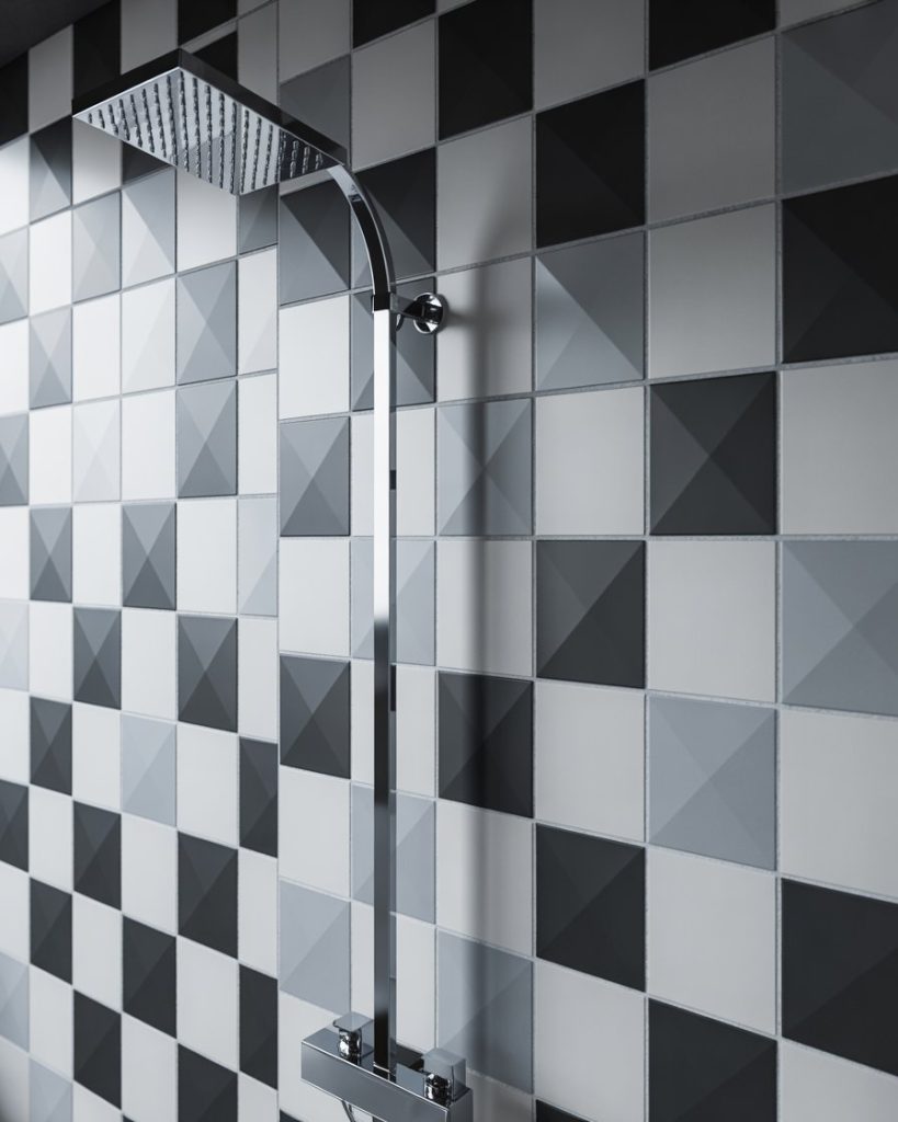 Nothing is more striking than black and white tiles in a bold geometric pattern. This style brings instant energy to a small bathroom or can add a dramatic focal point in a master bath. Designers are playing with checkerboard floors, hexagons, and stacked layouts, mixing matte black with glossy white for a classic yet modern statement.