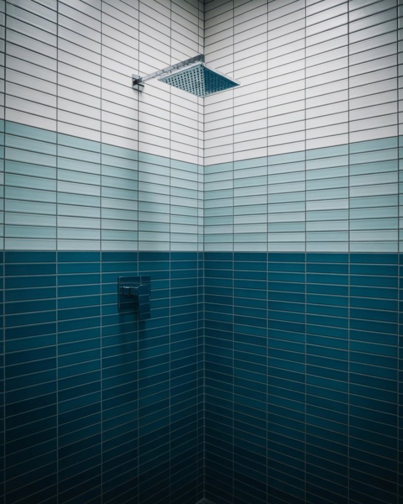 Ombre tiles transition from dark to light, creating a striking shower wall that feels like art. A blue gradient that fades into white captures a seaside vibe, while gray into black adds a sleek luxury touch. This works best in walk in showers with one main wall to highlight the effect. It’s a statement-making option for those who want a truly unique bathroom.