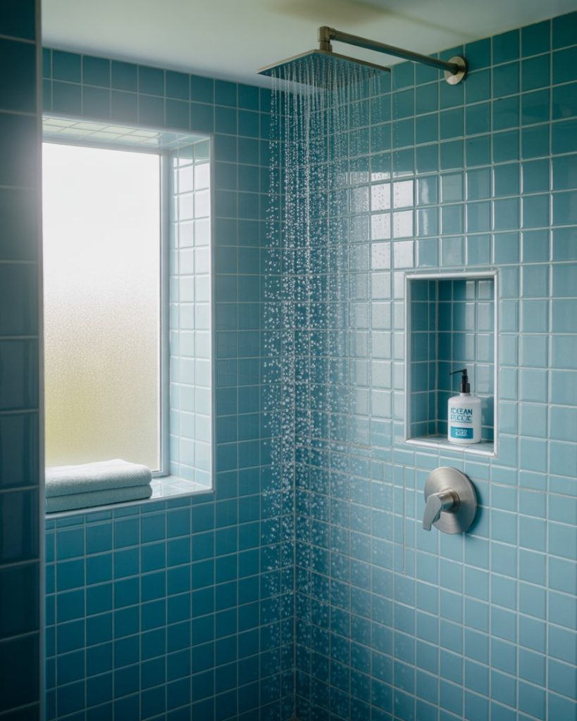 Blue tones are taking center stage in 2026, especially for those drawn to a coastal vibe. Light aqua shades make a walk in shower feel breezy, while deep navy adds a classic sense of drama. This palette pairs well with crisp white accents, creating a space that instantly transports you to a seaside retreat—even if you live in the city.