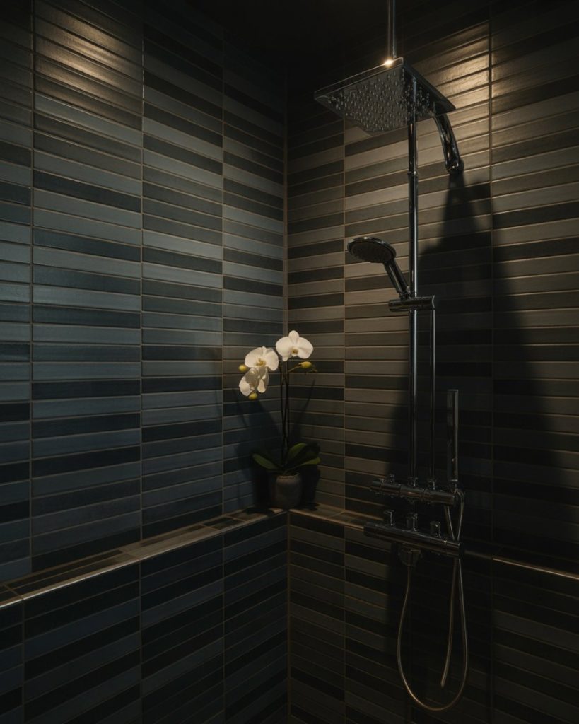 For those who prefer atmosphere over brightness, dark tiles are an ideal choice. Charcoal, slate, and even deep navy create a cocoon-like feel, perfect in a master shower where intimacy matters. With the right lighting, a walk in shower finished in dark stone offers a luxury retreat that feels surprisingly soothing.
