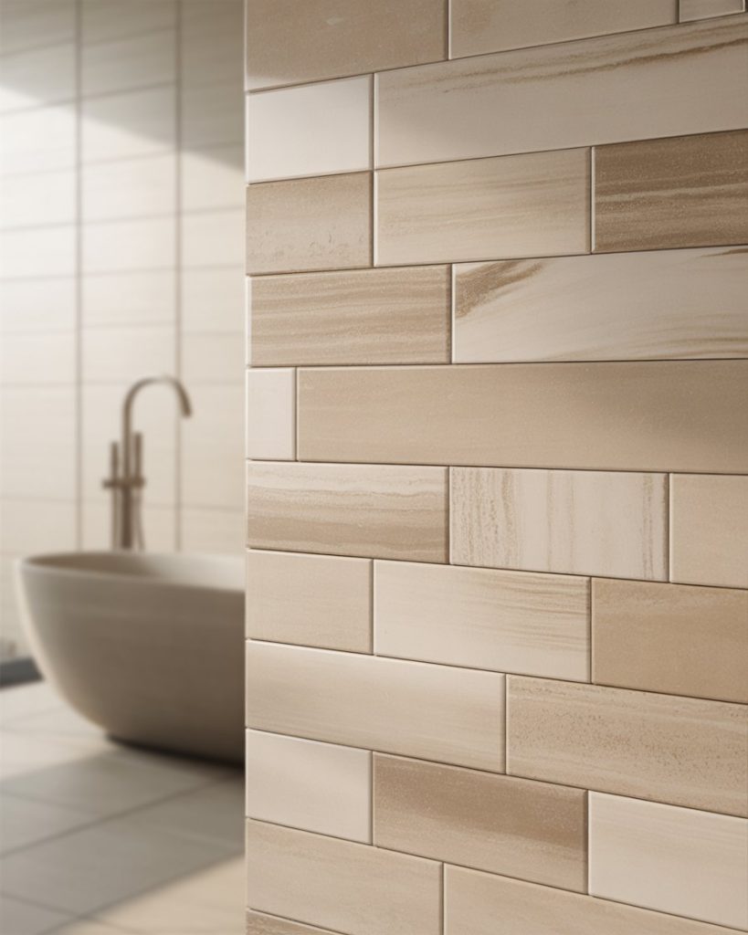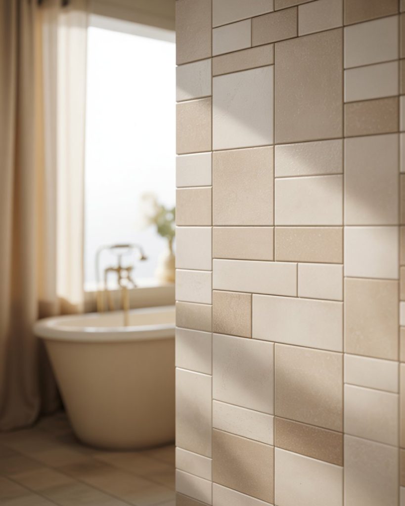 Neutral palettes are more than safe—they create a timeless bathroom that always feels fresh. Think soft beige, creamy white, and gentle grey with textured finishes that mimic linen or stone. These low-maintenance tiles are equally effective in a small bathroom or a spacious master shower, providing a subtle backdrop that blends with any style.