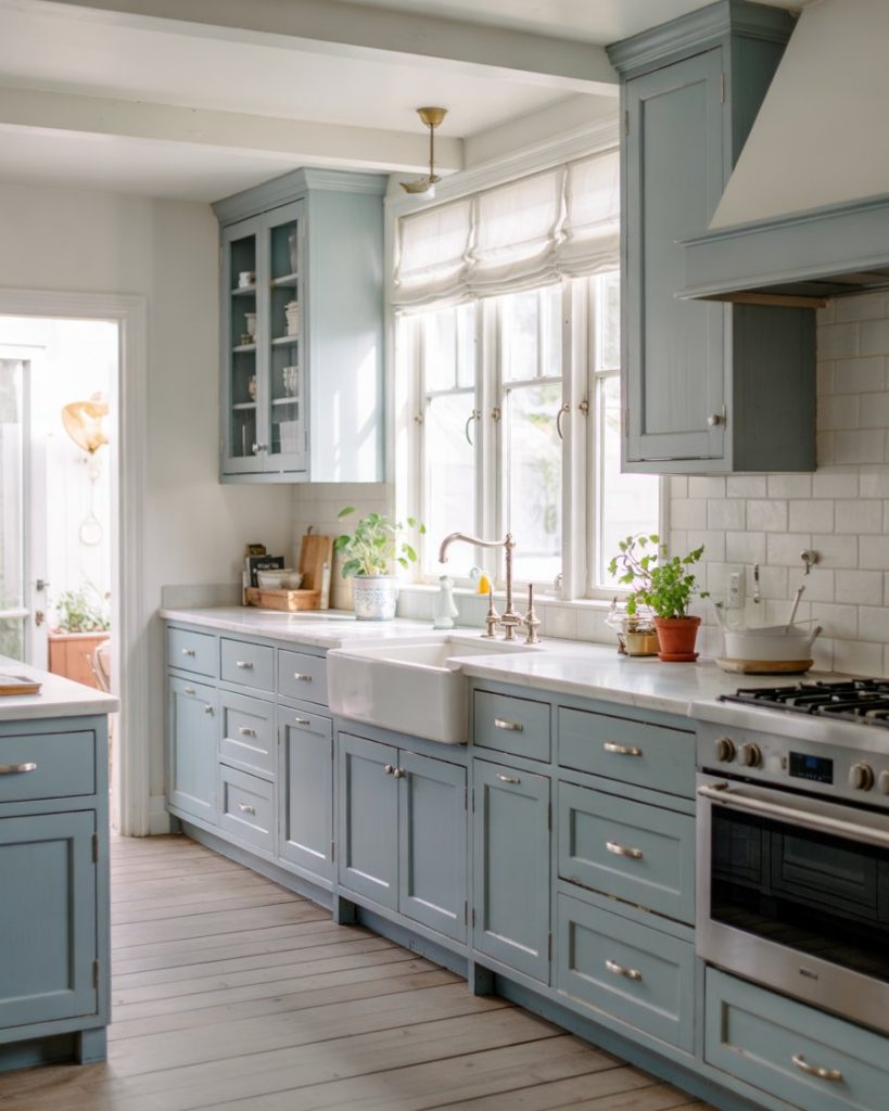 15. Dusty Blue and White Countertops