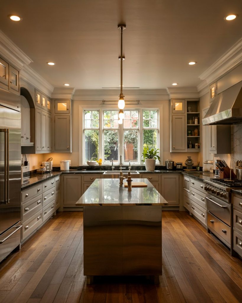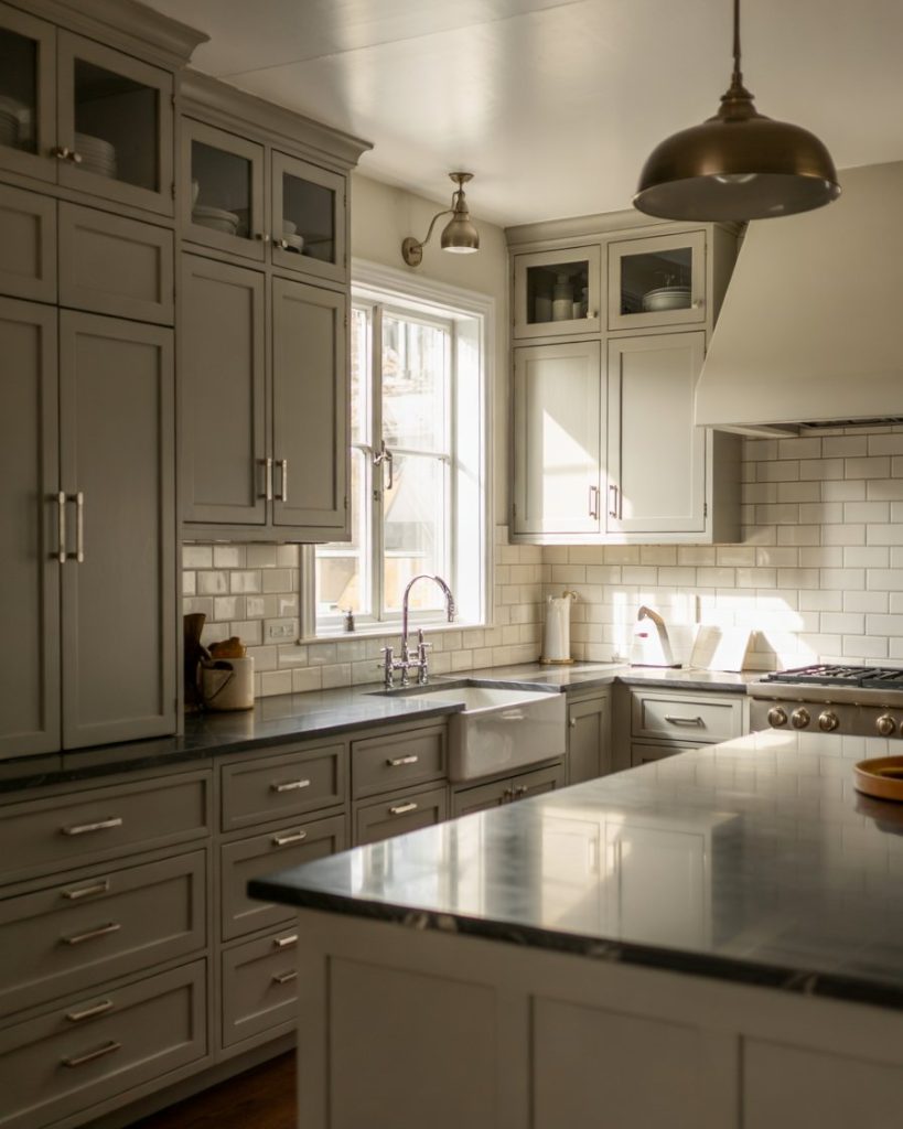 When modern meets classic, the result is timeless. A painted charcoal gray cabinet base with crisp white walls or uppers creates a sophisticated kitchen that works with dark granite counters or black slab surfaces. This balanced tone works well in industrial lofts or sleek suburban homes, maintaining visual depth without overpowering the space.
