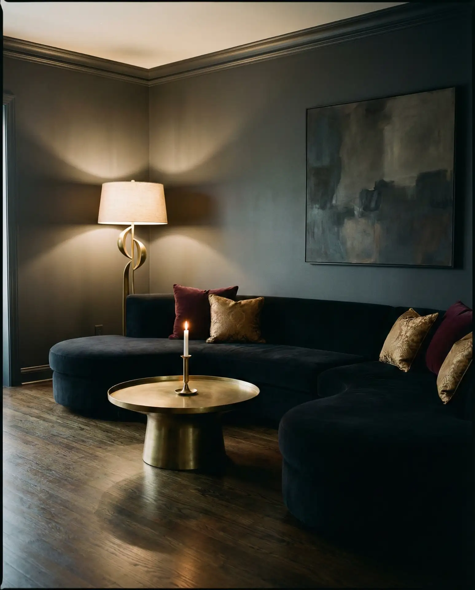 This style works best in rooms that already have some architectural drama—high ceilings, exposed beams, or large windows that can be dressed with heavy curtains. A black sectional in a tiny apartment with low ceilings, on the other hand, can feel oppressive. The key is contrast and texture: if you commit to the dark palette, make sure you have enough visual variation in your fabrics and finishes that the room does not simply disappear into one flat plane of color.