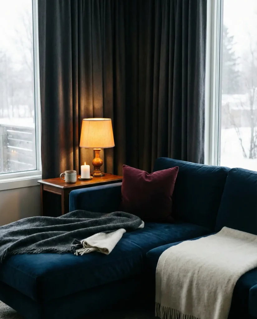 11. Deep Blue and Charcoal: A Moody Winter Room
