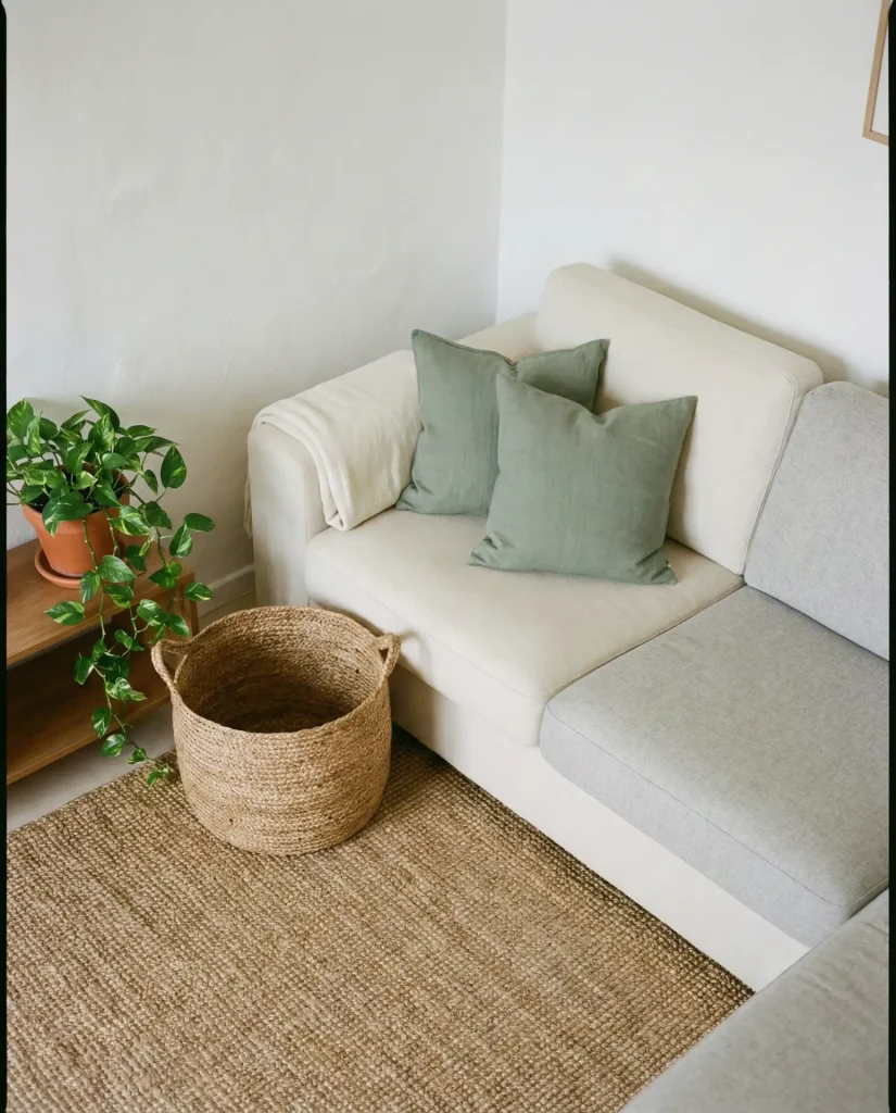 From a budget standpoint, this is one of the most approachable sectional looks you can pull off. A gray sectional from a retailer like Amazon or Article can run anywhere from $800 to $2,500 depending on the fabric and size, and adding a few green cushions and a plant or two costs less than $200 total. The beauty of this palette is that it scales—you can start simple and layer in more texture and greenery over time as your budget allows, and it will only look more intentional as it grows.
