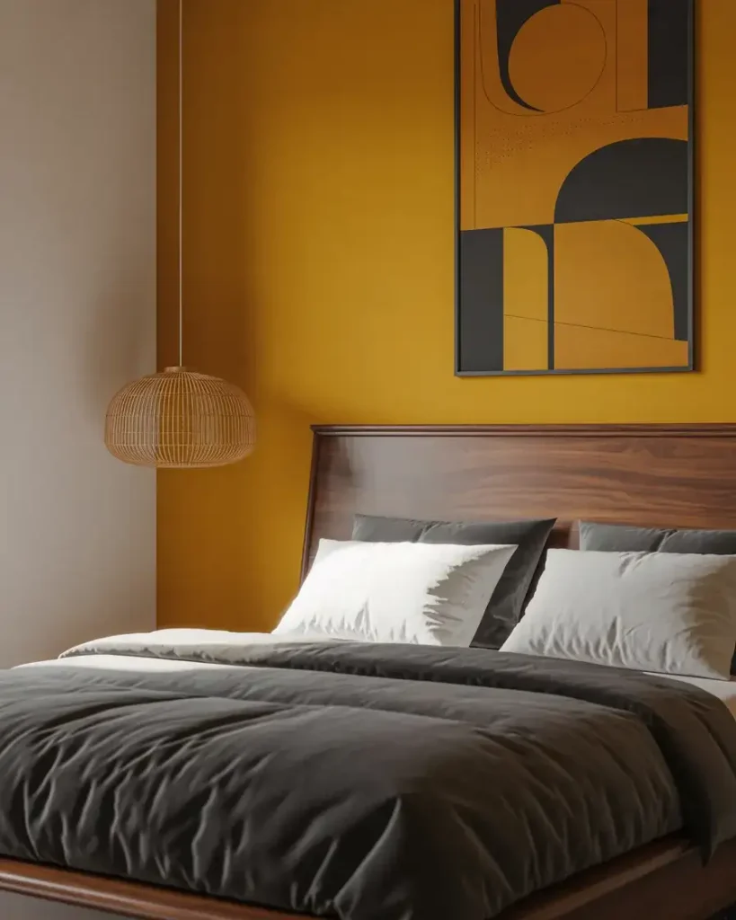 The key to making warm ochre work in a contemporary American bedroom is restraint in the accessories. The color is confident and warm on its own—you don’t need to pile on pattern or decoration. Let the walls do the work, keep furniture simple and natural, and invest in textiles with genuine texture and good weight. A single large framed botanical print or a woven wall piece adds just enough visual relief without competing. The result is a bedroom that feels grounded, generous, and—above all—like a place you actually want to return to at the end of every day.