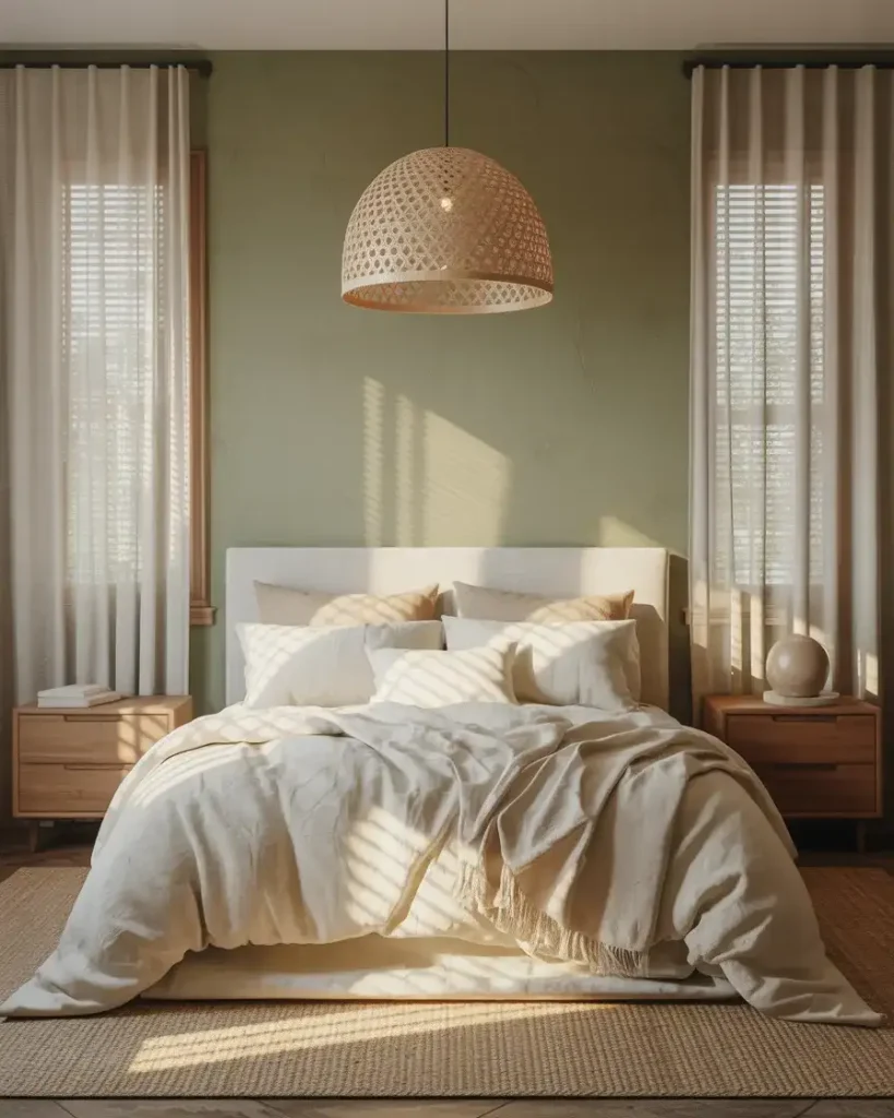 If there’s one color dominating mood boards and inspo feeds this season, it’s dusty sage green—a muted, earthy tone that sits somewhere between olive and mint and manages to feel both grounding and fresh. Unlike bolder greens that demand attention, sage is generous: it plays beautifully with warm wood furniture, linen bedding, and rattan accents. It also shifts subtly with natural light, looking almost golden in morning sun and deeply mossy at dusk. Paint the four walls for full immersion, or try it on just the wall behind your headboard for a softer commitment that still makes a statement.
