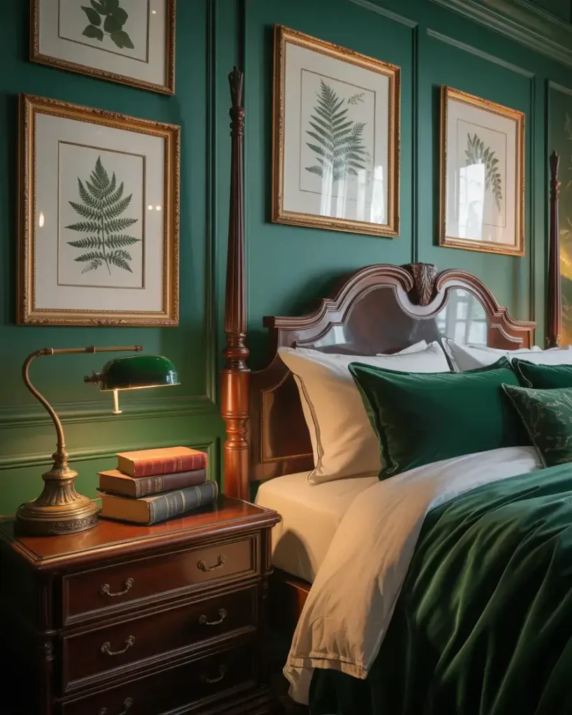 9. Forest Green Walls for a Lush, Library-Inspired Bedroom