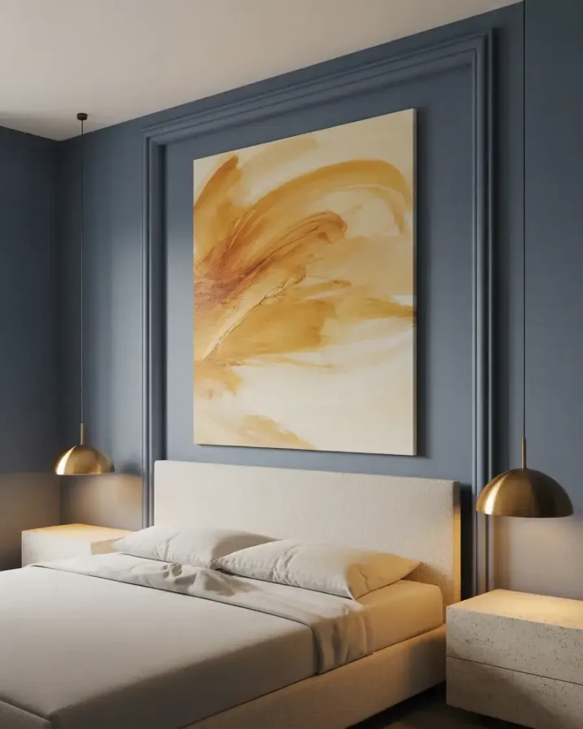 This is where texture becomes the design hero. A single large abstract canvas in creamy whites and taupes can anchor the headboard wall just as powerfully as a coat of paint. Add a chunky knit throw, a sisal rug, and linen curtains, and you’ve created something that photographs beautifully but—more importantly—feels genuinely restful to come home to. Sherwin-Williams Alabaster (SW 7008) is essentially the patron saint of warm whites, and for good reason: it’s creamy without tipping into yellow and adaptable without feeling beige.