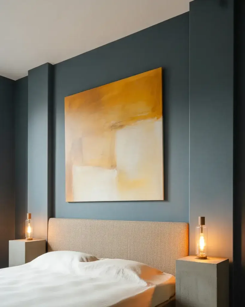Where slate gray works best is in open-plan studios or loft-style spaces where the bedroom area needs to feel deliberate and distinct without being physically separated from the rest of the room. The color grounds the sleeping area visually, creating a sense of enclosure and intention. Combine it with warm whites on adjacent walls and let the art do the emotional work—and you’ll have a bedroom that looks designed rather than decorated, a distinction that matters enormously when you’re scrolling through images online looking for ideas that feel genuinely achievable.