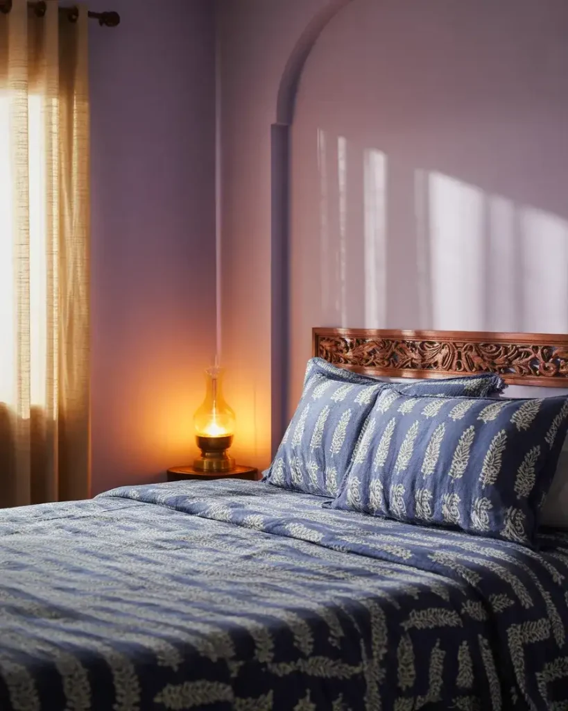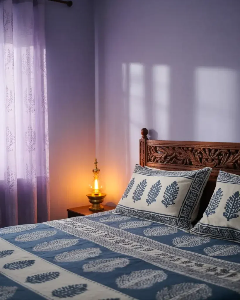 The influence of South Asian interior traditions on American bedroom design is profound and growing—and one of the most accessible ways to draw on ideas from Indian aesthetics is through a palette of soft lilacs, warm whites, and dusty purples layered with richly patterned textiles. In traditional Indian design, violet and lavender tones represent spirituality and calm, often paired with gold embroidery and intricate block-print patterns that bring extraordinary visual depth to a bedroom without requiring expensive renovations.