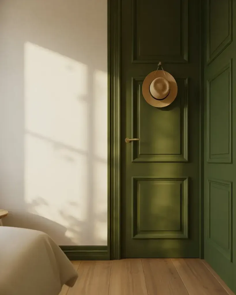 This trend started in European interiors and has been making its way through American design media over the last two years. What makes it so appealing for practical homeowners is the commitment level: you can paint a door in a single afternoon for the cost of a quart of paint. If you love it, great—your room has a whole new character. If it’s not quite right, you repaint. It’s the lowest-stakes experiment in your decorating toolkit, and the upside is a bedroom that looks like you spent five times what you did.