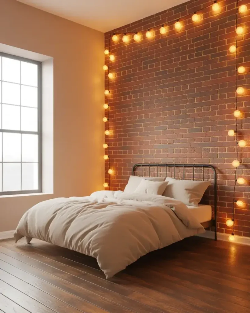 There’s something undeniably romantic about an exposed brick wall—and pairing it with warm ivory paint on the remaining three walls creates one of the most effortlessly appealing bedroom aesthetics in the urban American decorating playbook. The contrast between the rough, variegated brick and smooth, creamy painted walls creates a textural dialogue that makes the whole room feel alive. This is a wall ideas approach that works especially well in converted industrial spaces, older urban buildings, or any home where the architecture has something interesting to say.