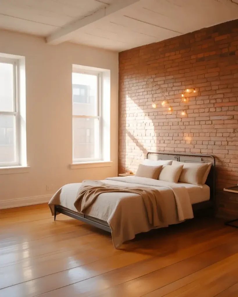 18. Warm Ivory with Exposed Brick for a Loft-Style Bedroom