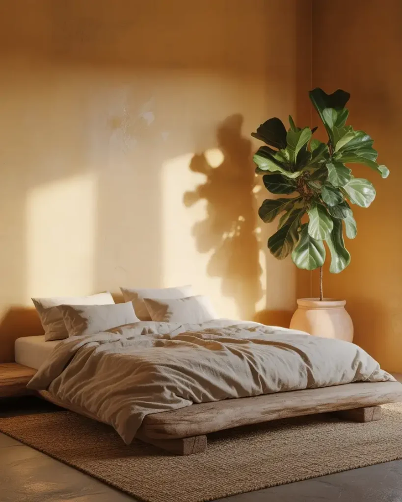 24. Warm Ochre and Natural Linen for an Organic, Grounded Bedroom