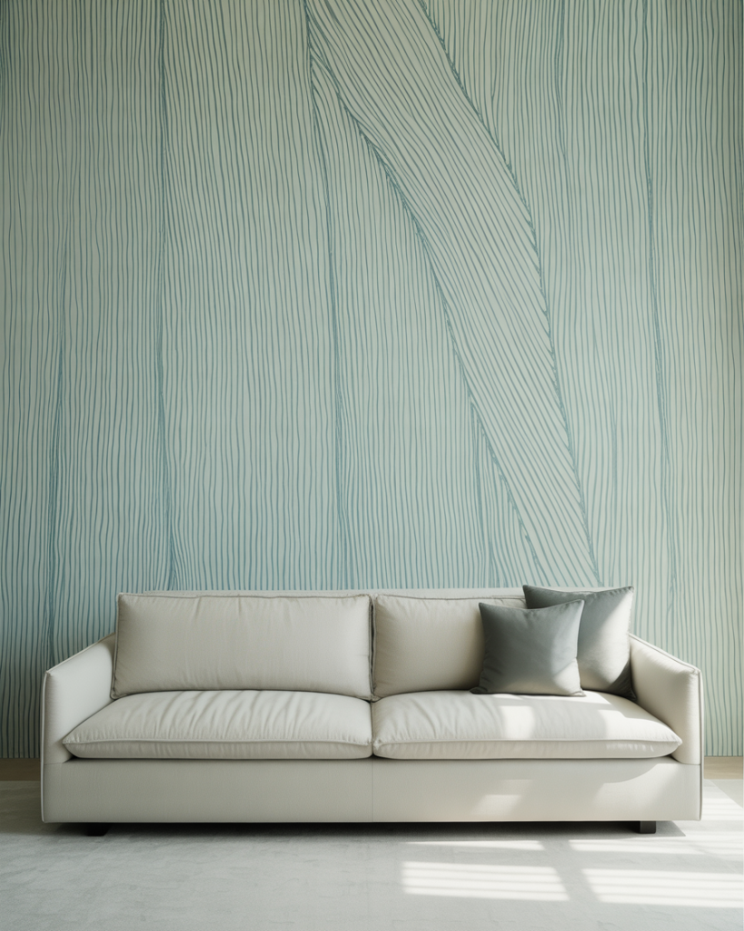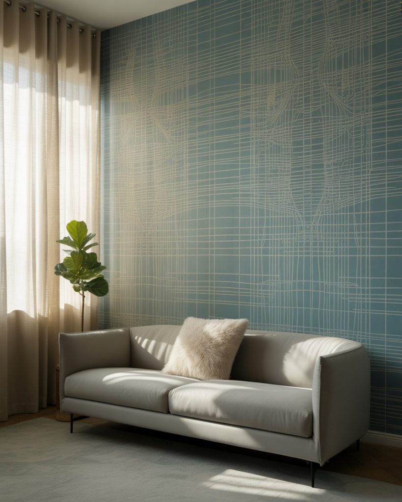 Abstract wallpaper is a huge artistic statement of 2026. The large patterned blue or green lines lend dynamic energy to minimalist spaces. Set behind a couch or desk, it injects gentle motion that complements- rather than competes with- other elements of room decor.